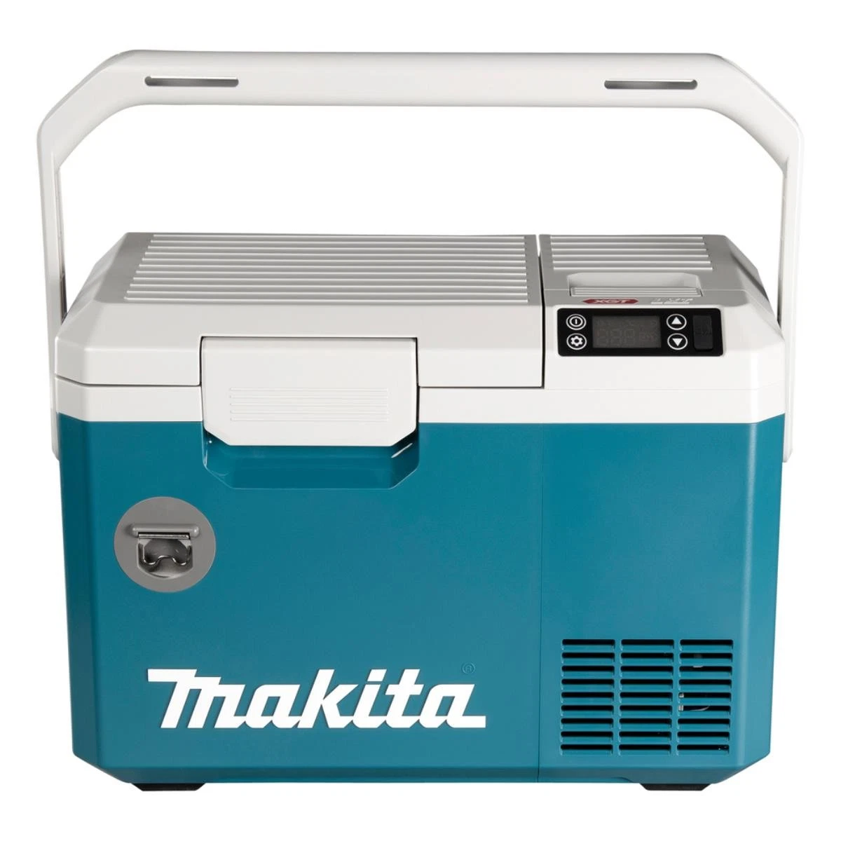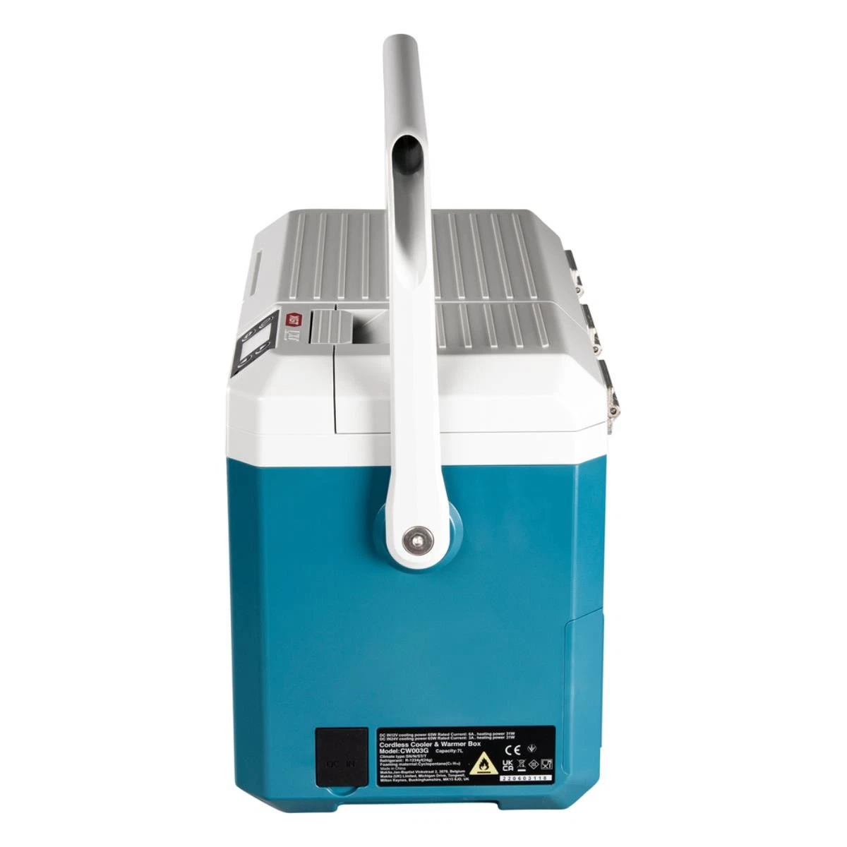Die Makita CW003GZ01 Kühl- und Wärmebox ist mit einem Kompressor-Kühlsystem ausgestattet und zeichnet sich daher durch einen hohen Wirkungsgrad aus. Das Gerät verfügt über 7 definierte Kühltemperaturen (-18/-15/-10/-5/0/5/10°C) und 7 definierte Heiztemperaturen (30/35/40/45/50/55/60°C). Durch das entsprechende Design und die verwendete Technologie können Speisen bis zu 5,5 Stunden warm und Getränke bis zu 13,5 Stunden kühl gehalten werden. Das Batteriefach ist mit einem wasserdichten Deckel verschlossen, so dass der Akku vor Überschwemmung geschützt ist. Die eingebaute LED-Anzeige ist gut lesbar und ermöglicht das Ablesen der Innentemperatur und des Ladezustands. Bequeme Transportgriffe machen das Tragen des Modells sehr komfortabel. Der im Akkufach eingebaute USB-Anschluss ermöglicht das Aufladen von mobilen Geräten. Am Gehäuse befindet sich außerdem ein Flaschenöffner.