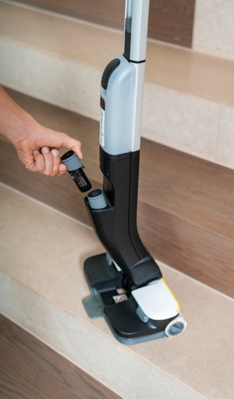 Kabelloser Hartbodenreiniger mit Wechselakkus und Schnellladegerät