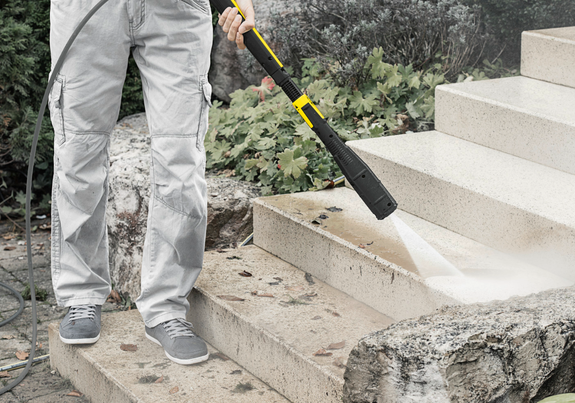 Einfaches Umschalten zwischen Flachstrahl, Rotordüse und Reinigungsmitteldüse – ohne Strahlrohrwechsel. -