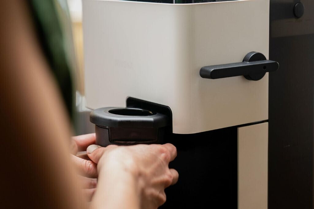 Der CUBE 4‘ bietet eine einfache und innovative Art der Kaffeezubereitung. Der Click Cup wird für das Mahlen und Brühen von Kaffee oder Espresso in verschiedenen Positionen genutzt. Alle Einstellungen wie Kaffeemenge, Temperatur und Aromaprofil lassen sich individuell anpassen. Nach dem Brühen erfolgt die schnelle Reinigung durch einfaches Entnehmen und Drehen des Click Cups.
