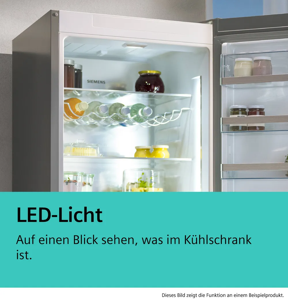 - LED-Licht: Bietet eine helle und gleichmäßige Ausleuchtung, damit du schnell siehst, was im Kühlschrank ist.