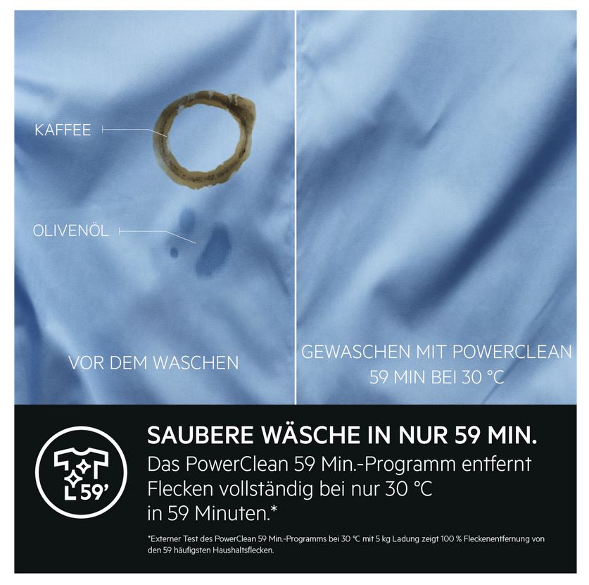Die AEG 8000 PowerCare Waschmaschine mit innovativer ÖkoMix-Technologie und PowerClean-Programm sorgt für hervorragende Waschergebnisse bei geringstem Energieverbrauch. Mit der PowerCare-Technologie wird Waschmittel optimal mit Wasser vermischt und gleichmäßig auf Ihre Kleidung verteilt, um selbst bei niedrigen Temperaturen überragende Reinigungskraft zu gewährleisten. Die PowerClean 59-Minuten-Option entfernt Flecken zu 100 % bei nur 30 °C in weniger als einer Stunde. Ideal für alle, die Wert auf schnelle, aber gründliche Waschergebnisse legen.