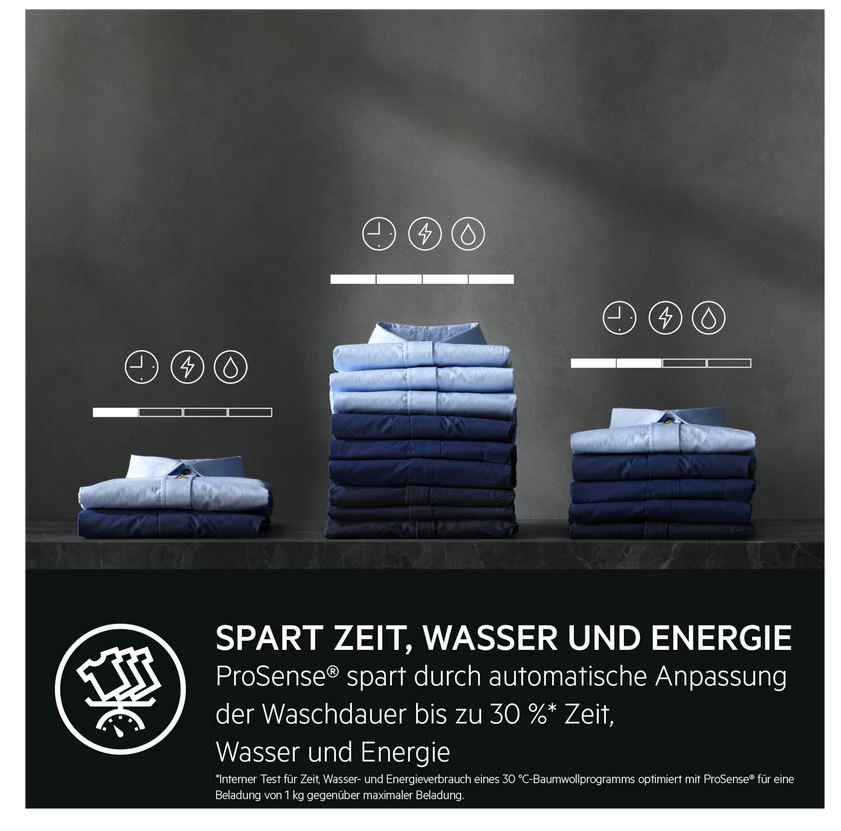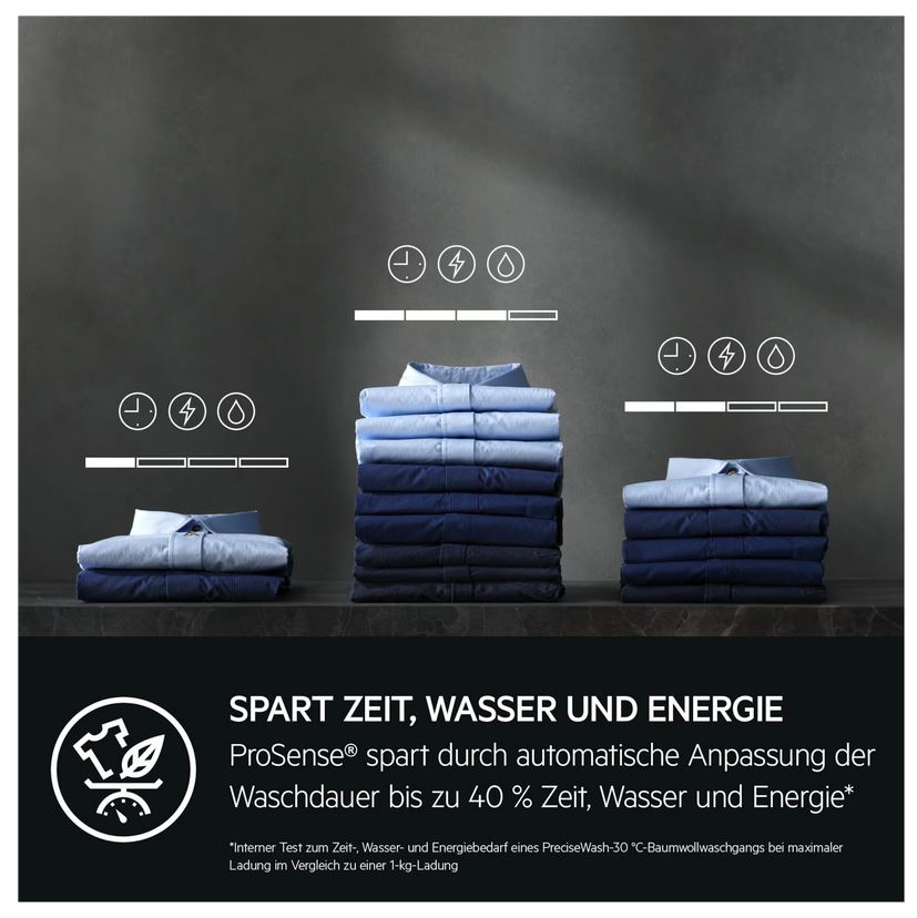 - ProSense® Mengenautomatik: Spart bis zu 40 % Wasser, Zeit und Energie durch automatische Anpassung an die Waschladung.